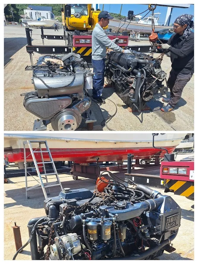 5/28 エンジン載せ替え作業。|瀬戸内・山口・周南【遊漁船直穂丸】